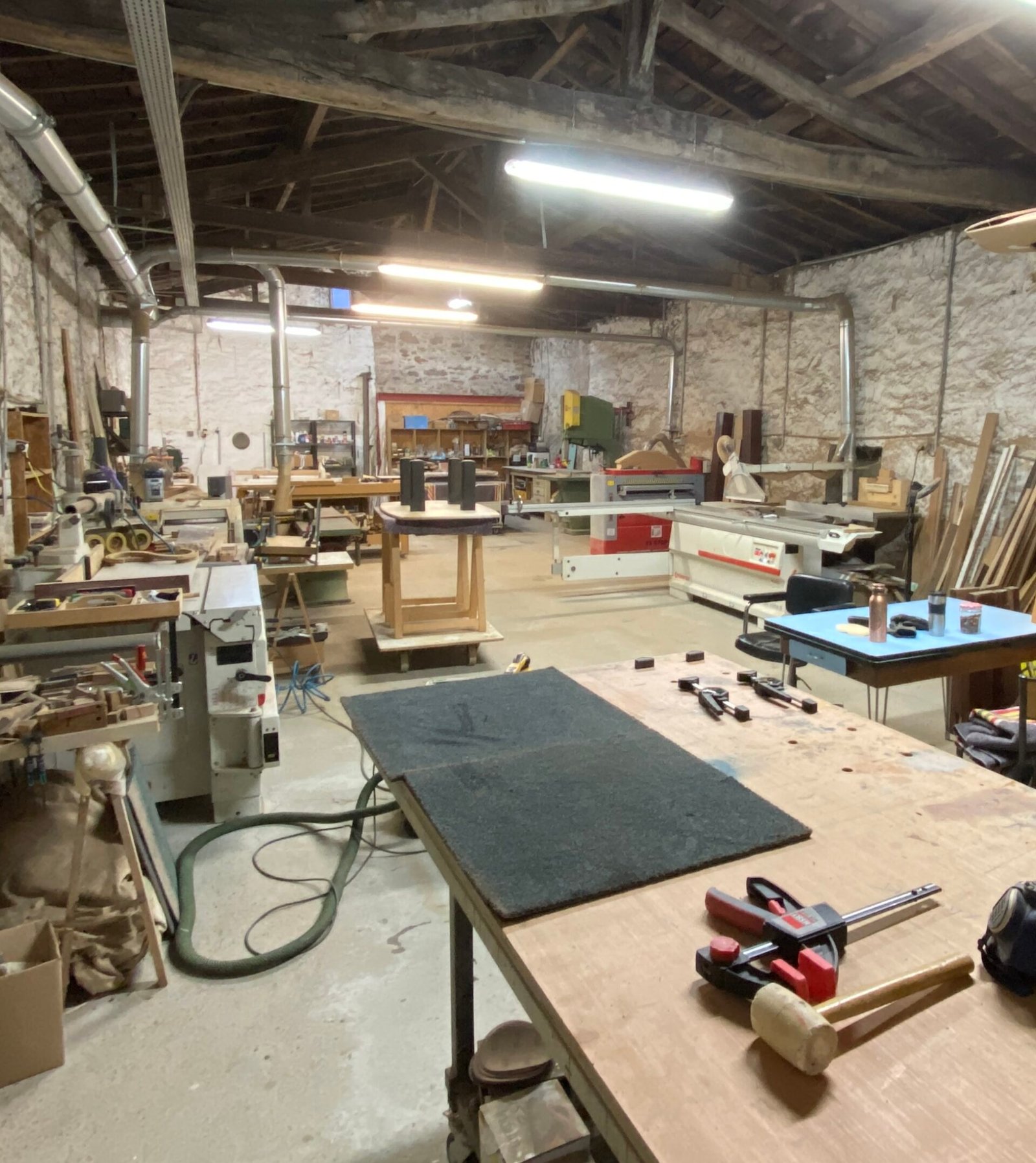 - Fabrication — travail à l’atelier : noyer, chêne, poirier, acier/laiton… Chaque détail est ajusté.