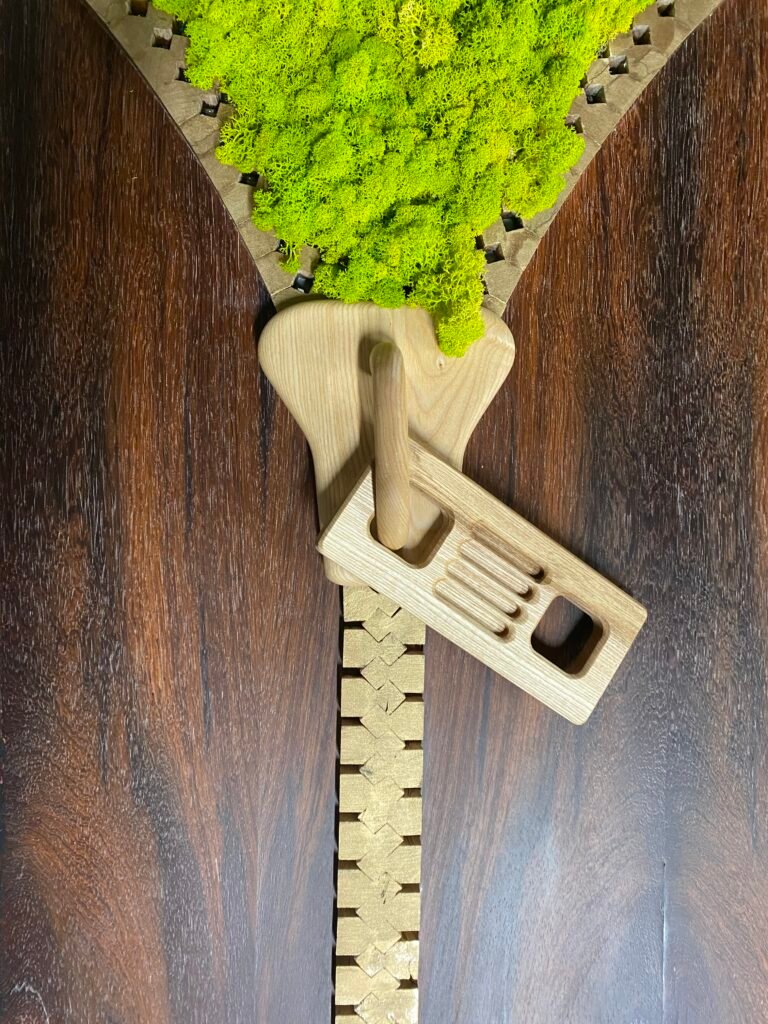 J’ai toujours aimé le détournement d’objet. C’est une manière ludique et poétique de regarder autrement ce qui nous entoure, de redonner vie à des objets que l’on ne remarque plus. Cette décoration murale de salon en bois, intitulée Ouverture Éclair, en est un bon exemple : un objet du quotidien, revisité simplement, qui invite à sourire et à réfléchir.