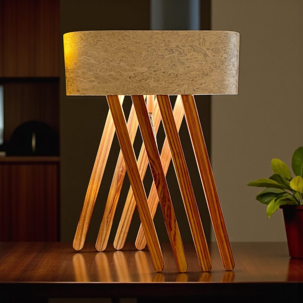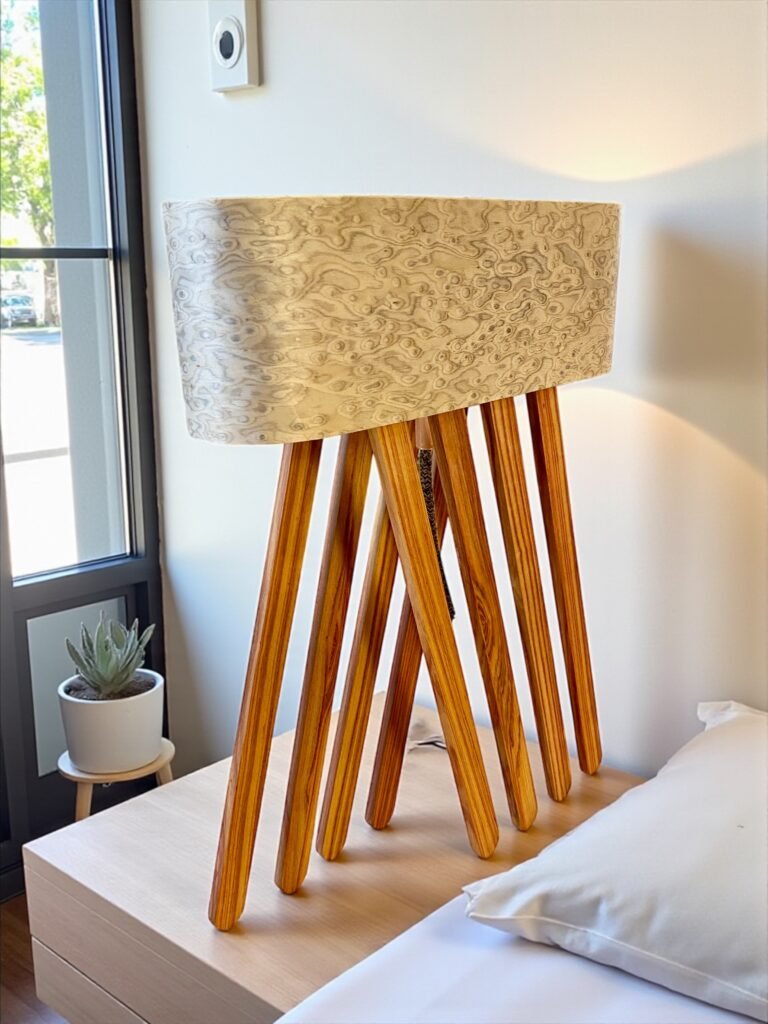Un abat-jour atypique en Tamo, un bois hypnotique