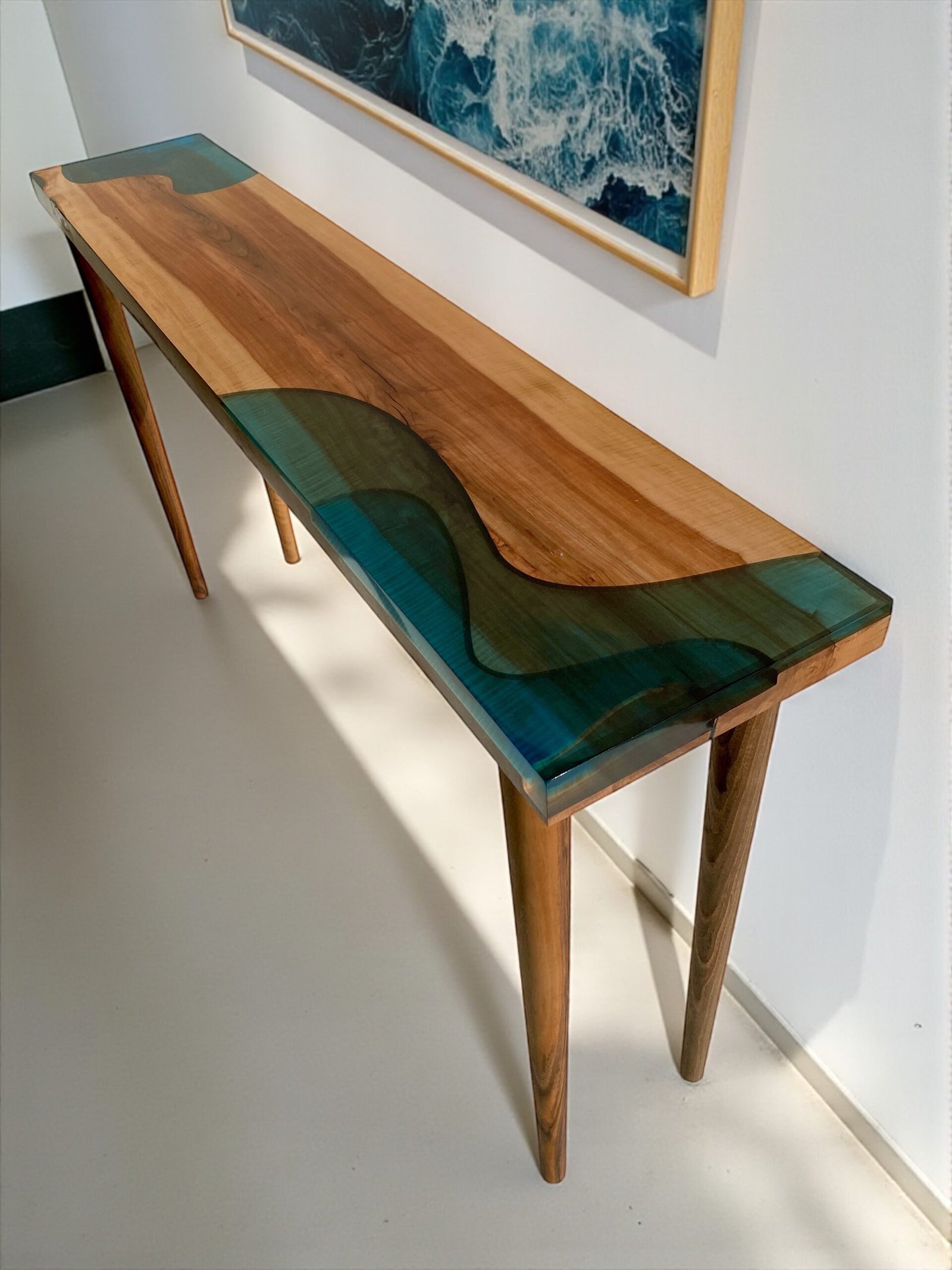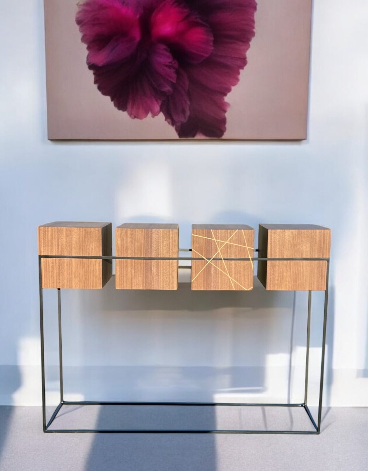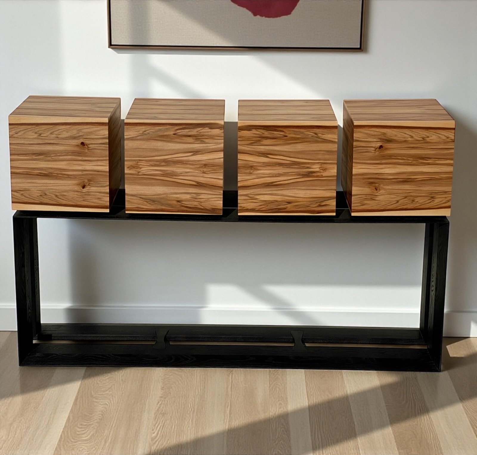 Ici, vous découvrez mes tables basses et consoles comme autant de fragments de paysage. Chaque pièce naît d’un bois choisi, façonné à la main, puis laissée vivre avec sa propre lumière. Parcourez la galerie et ouvrez chaque fiche : vous y trouverez dimensions, essences et histoire. Si vous imaginez une variation, parlons-en ; le sur-mesure fait partie de mon vocabulaire.