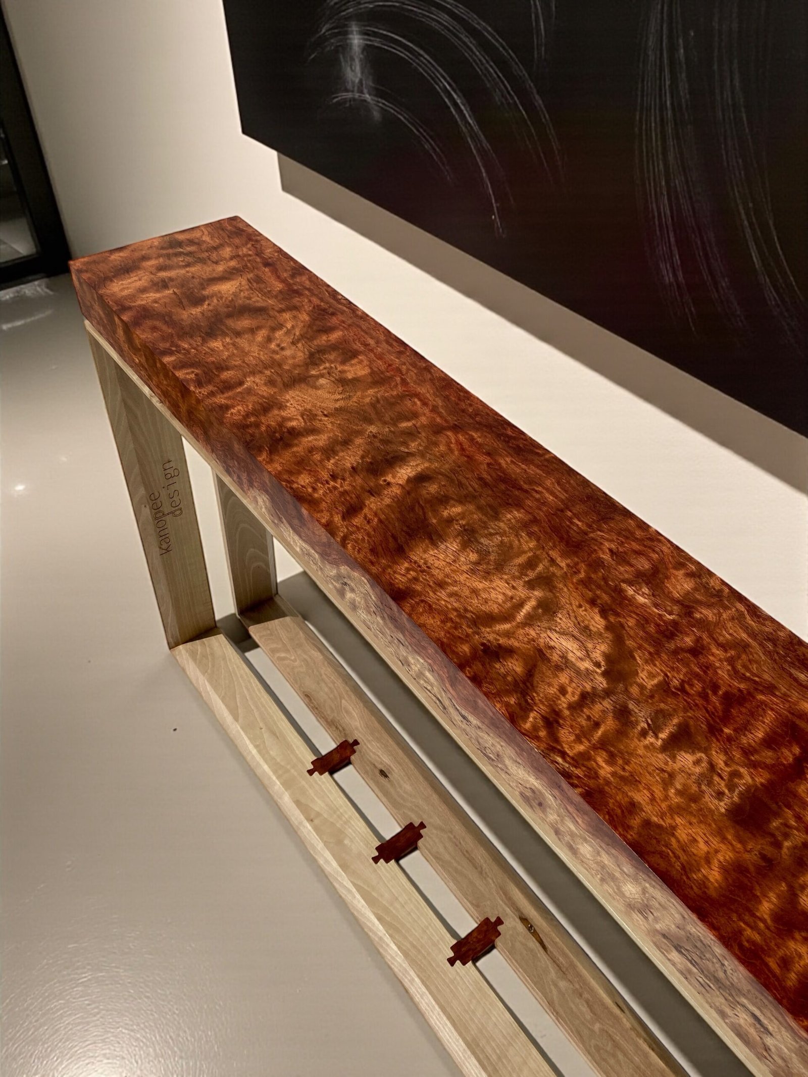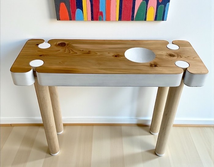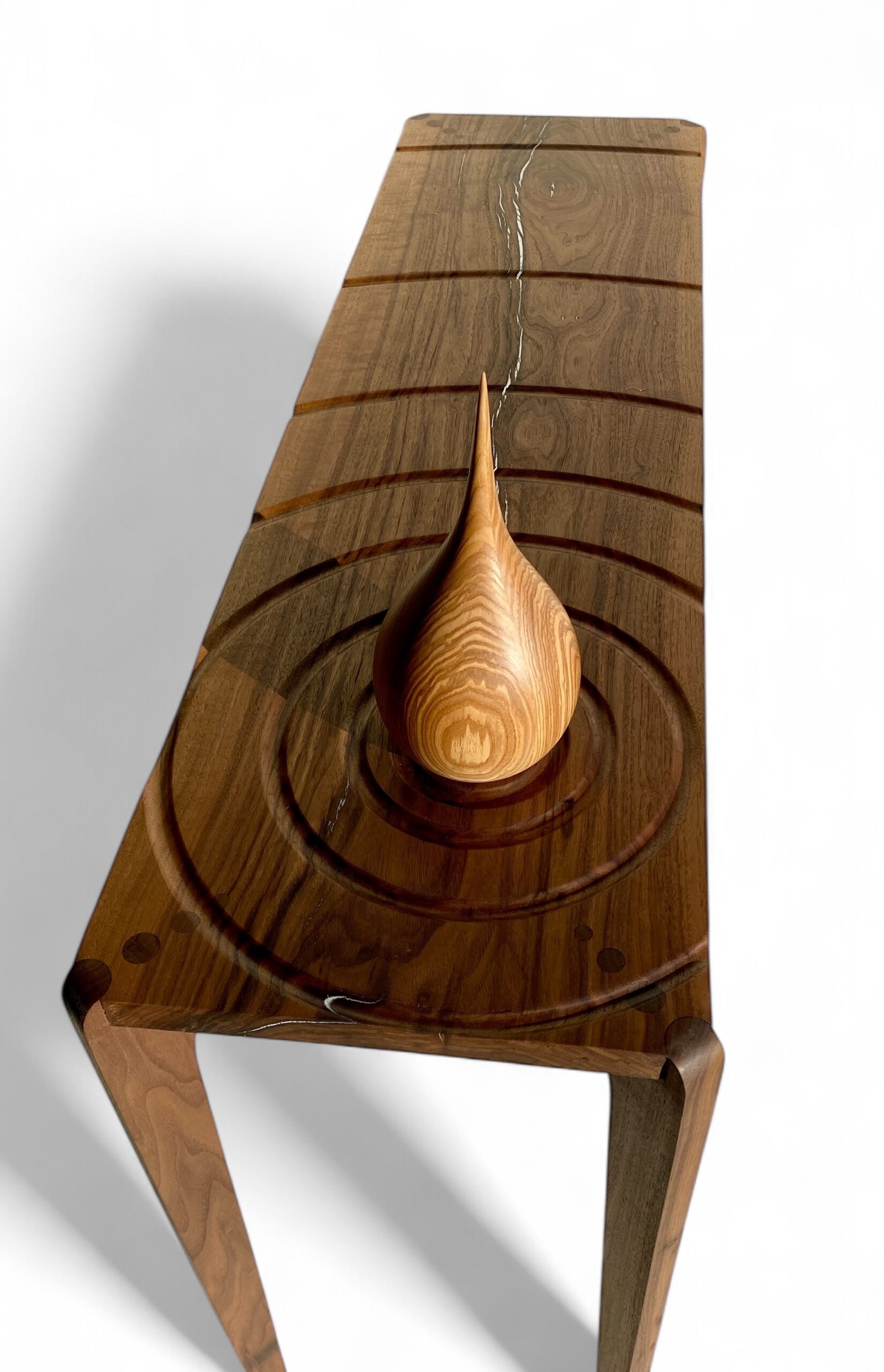 Ici, vous découvrez mes tables basses et consoles comme autant de fragments de paysage. Chaque pièce naît d’un bois choisi, façonné à la main, puis laissée vivre avec sa propre lumière. Parcourez la galerie et ouvrez chaque fiche : vous y trouverez dimensions, essences et histoire. Si vous imaginez une variation, parlons-en ; le sur-mesure fait partie de mon vocabulaire.