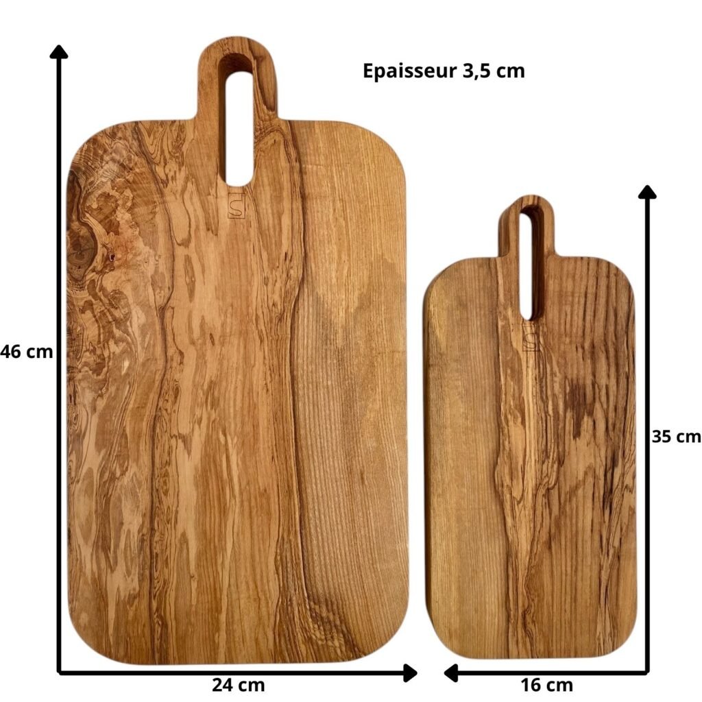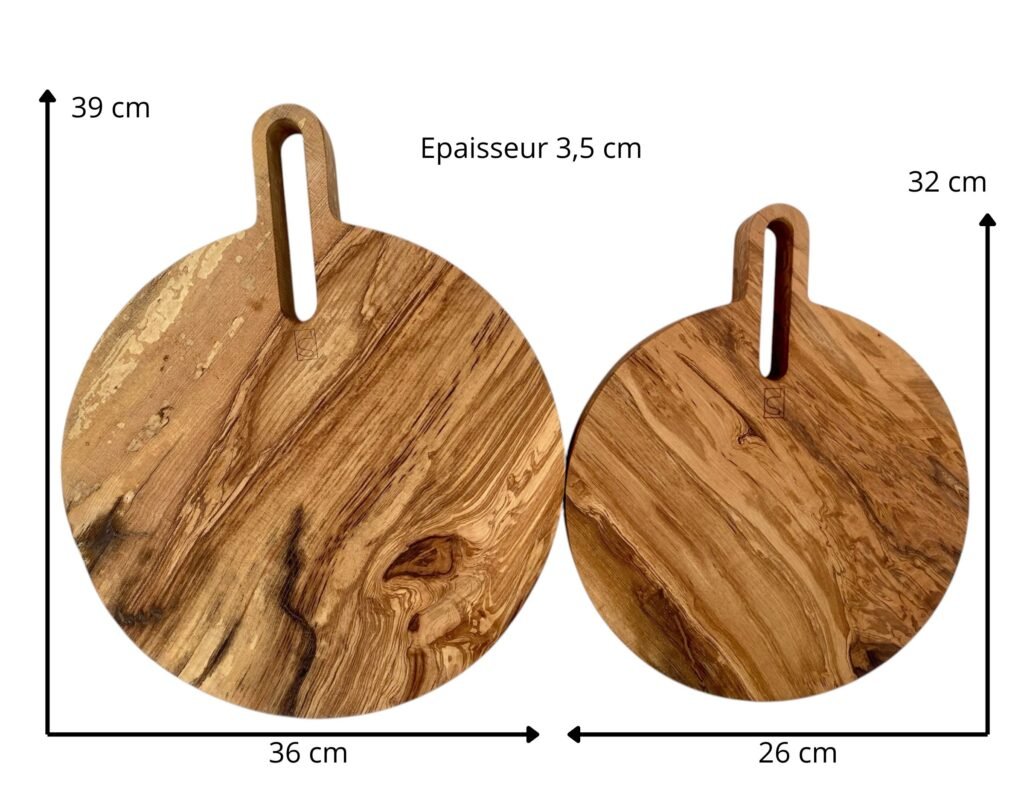 - Face B : vierge de coups, elle devient plateau de présentation pour fromages, charcuteries, pains, fruits ou mises en bouche.