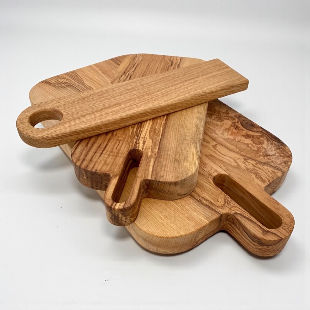 Parce que ces gestes demandent une surface fiable et agréable, je propose des planches à découper pensées pour un usage quotidien — et assez élégantes pour passer directement à table.