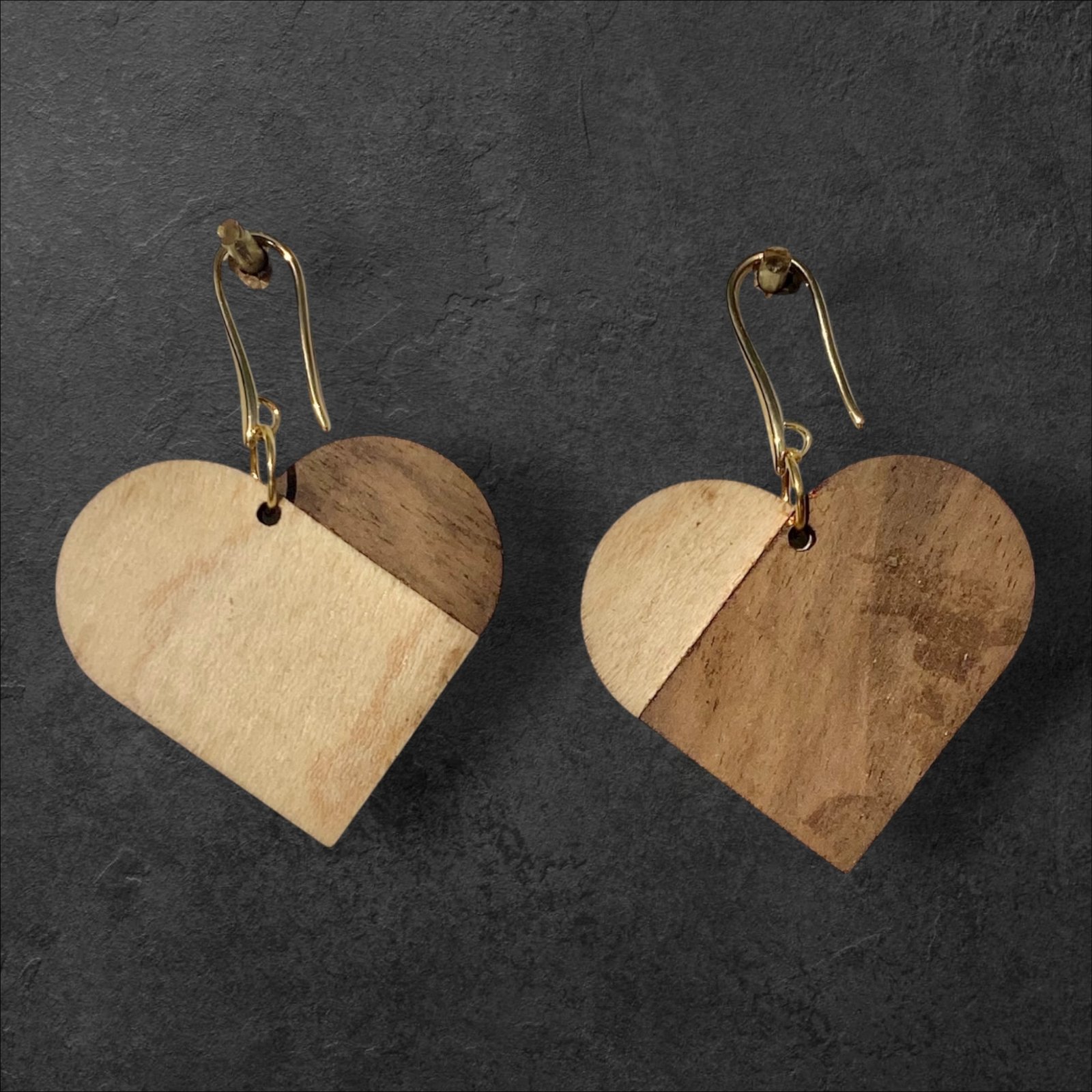 LOVE— boucles d’oreilles en bois (érable ou noyer) à la forme iconique et universelle. Ultra légères, apprêts sans nickel. Fabrication artisanale française.