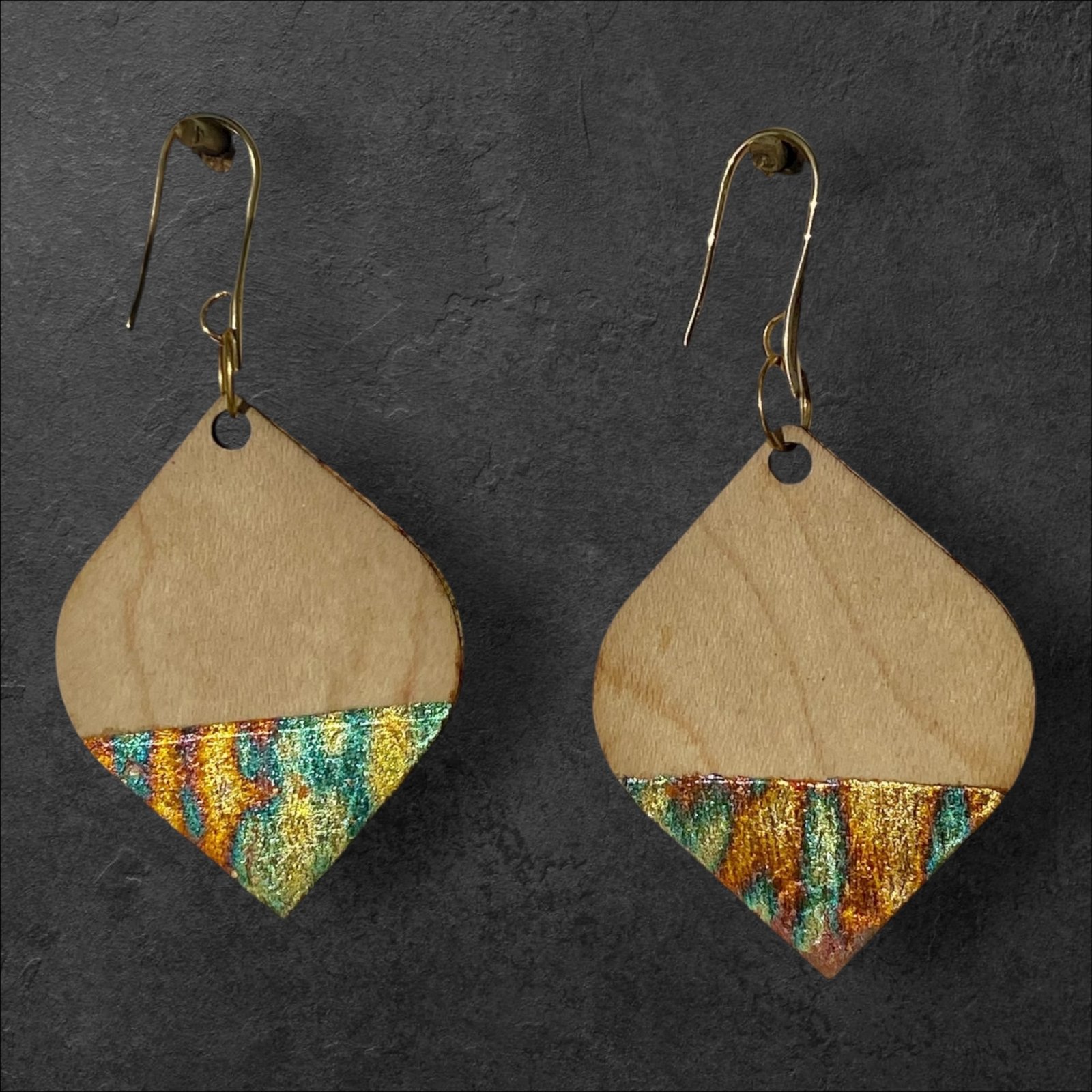 NAYA est une paire de boucles d’oreilles légère et contemporaine, réalisée à la main dans mon atelier. Le bois — érable ou noyer au choix — révèle son veinage naturel, tandis qu’une touche de cuivre oxydé (teinte bleutée ou rouge) apporte de subtils reflets. Les lignes sont sobres, la forme met en valeur la matière, et chaque paire reste unique par le dessin du bois et la nuance de l’oxydation.