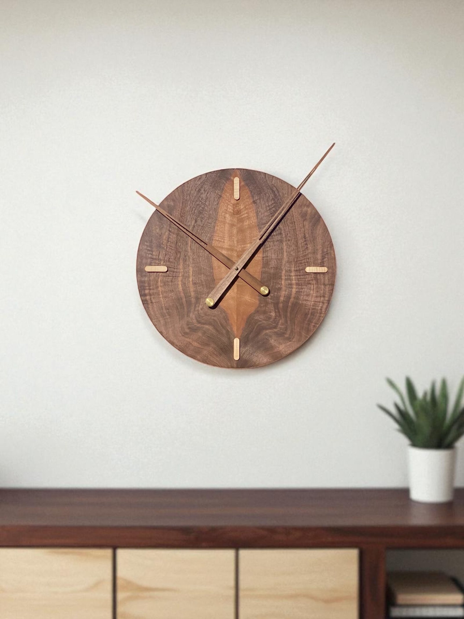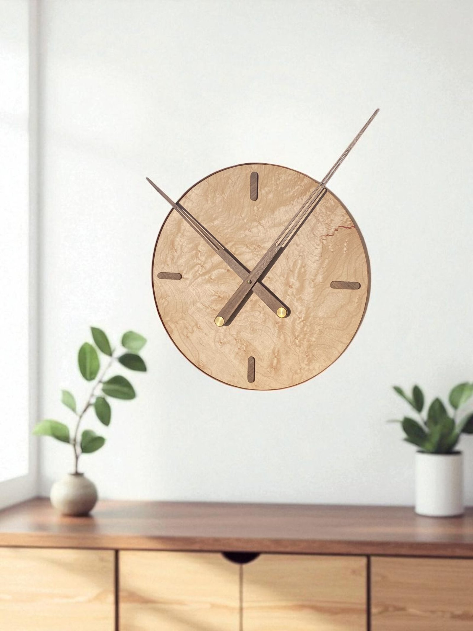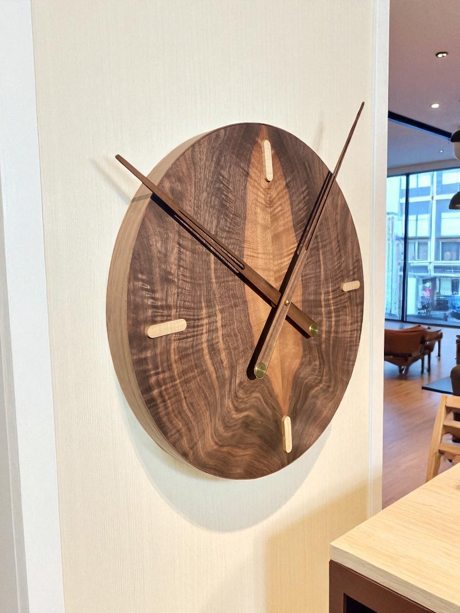 Avec une horloge design en bois au mur, la réponse devient évidente — et agréable à regarder.