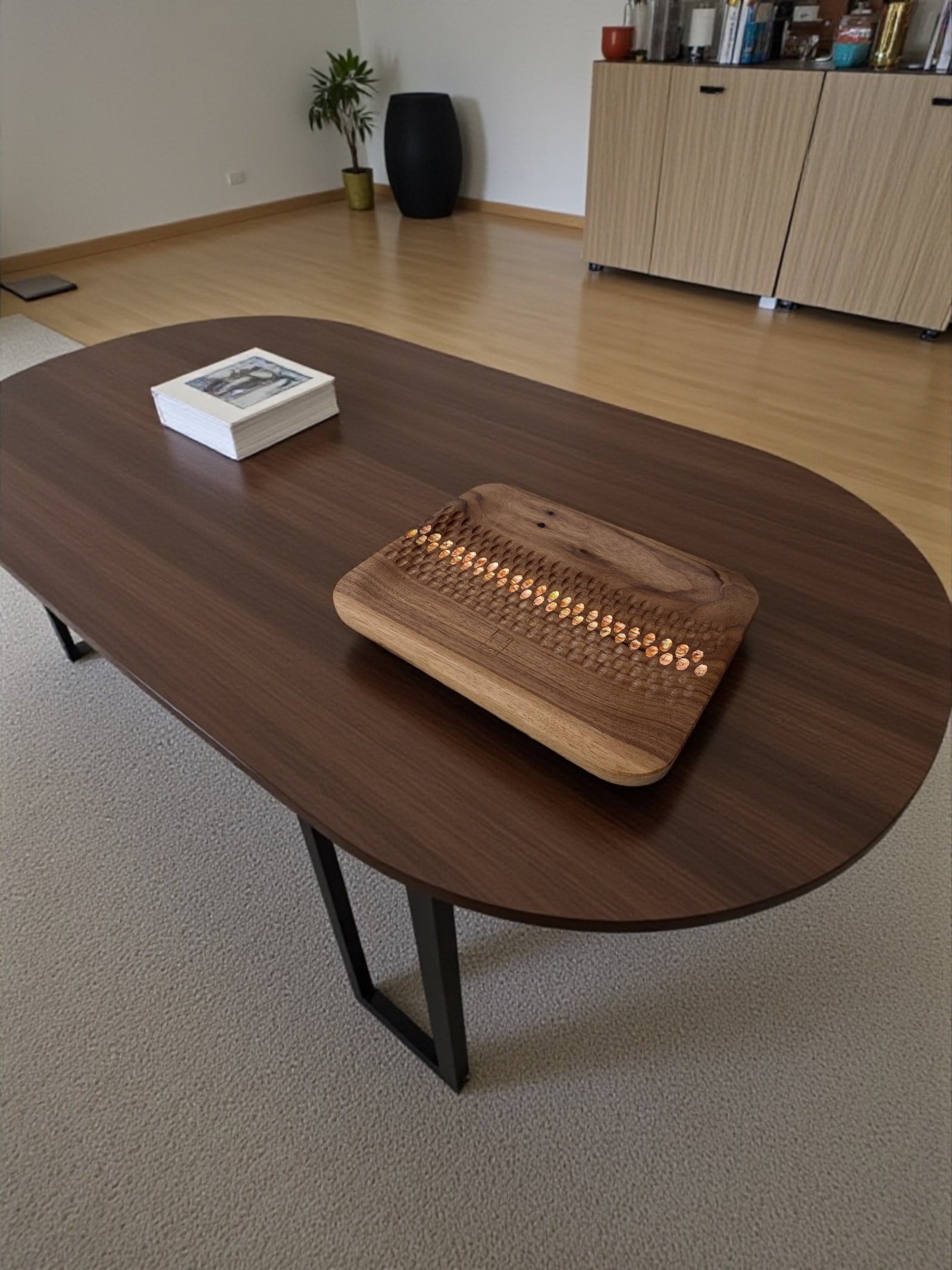 Plateau sculpté bois- SAKU – Noyer ou Zébrano