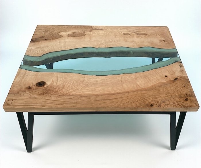 Table basse rivière bois et verre “Flumen”